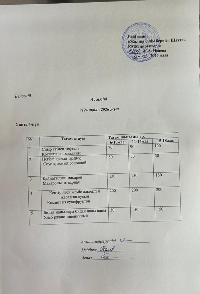 Ас мәзірі 12.02.2026