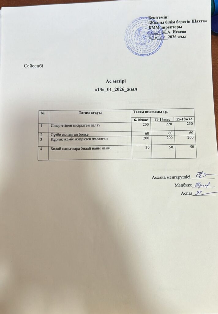 Ас мәзірі 13.01.2026