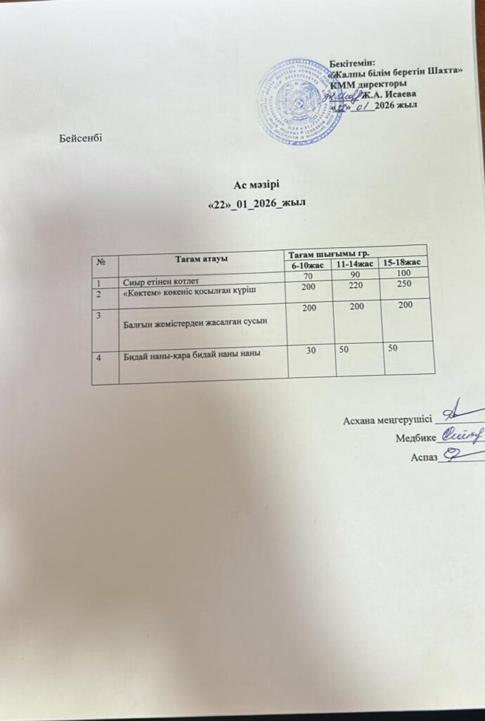 Ас мәзірі 22.01.2026