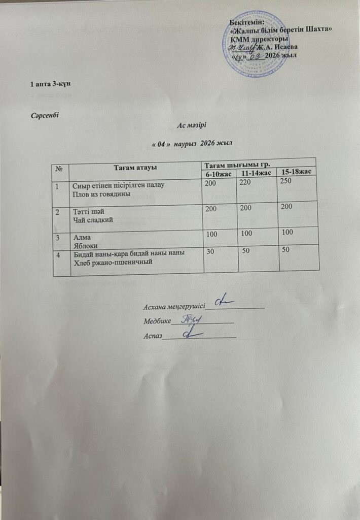 Ас мәзірі 4.03.2026